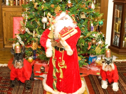 Every year, the Four Oaks Puppy Club requires that Bill and Carol send them a picture of us. So they started putting pictures of us in their Christmas cards a couple of years ago.